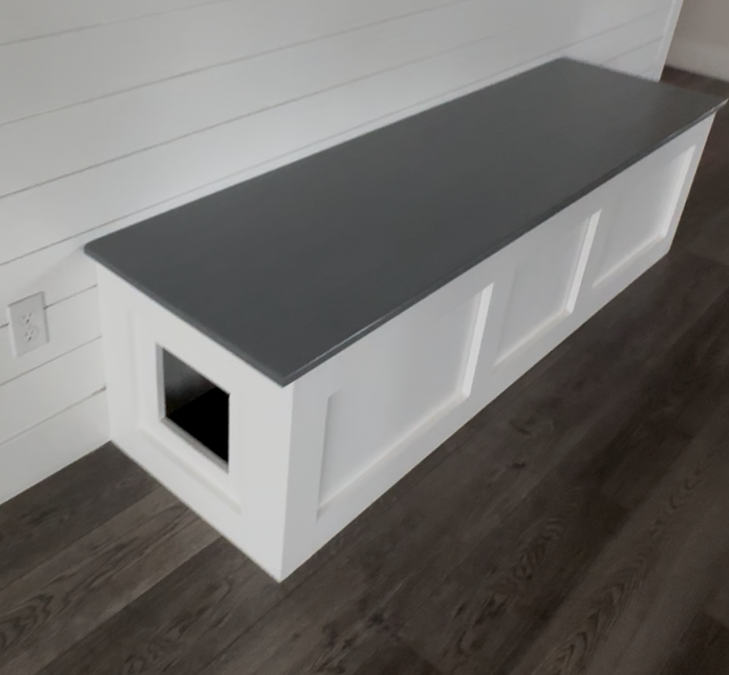 If you are here, then you likely found this page from the viral Instagram reel showcasing the cat litter box bench that we designed and built. Due to so many inquiries, we wanted to make the option for you to have the bench in your home.